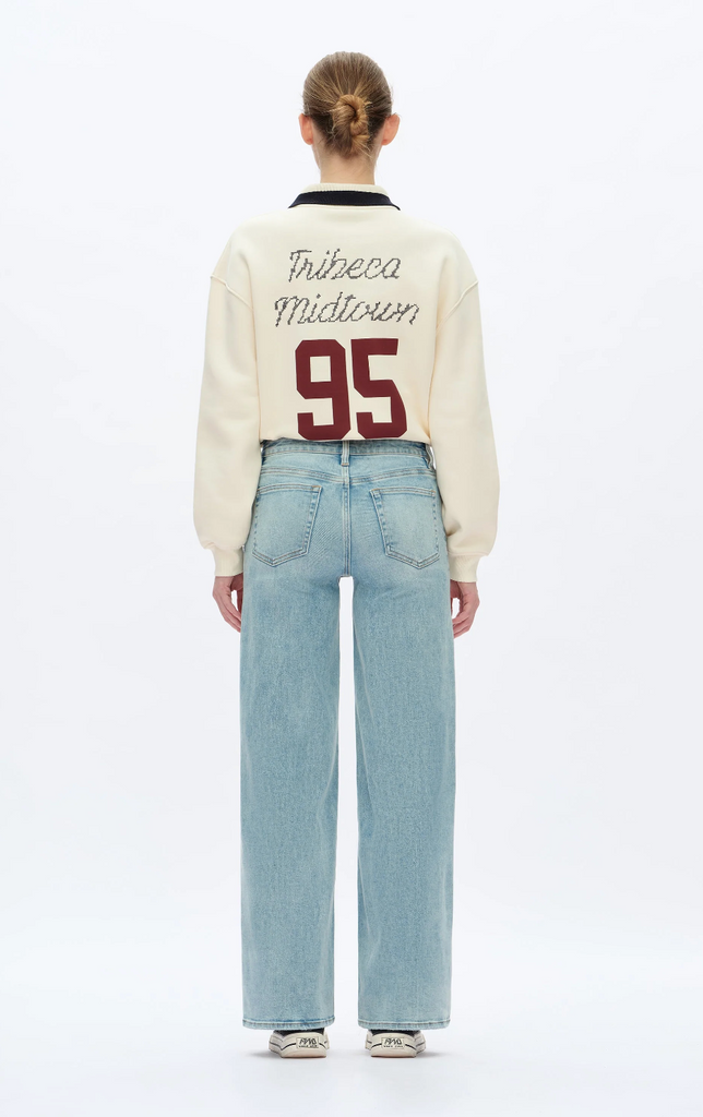 Full of retro '90s style, these stretchy jeans feature a mid-rise waist, floor-grazing wide legs and a faded light wash.